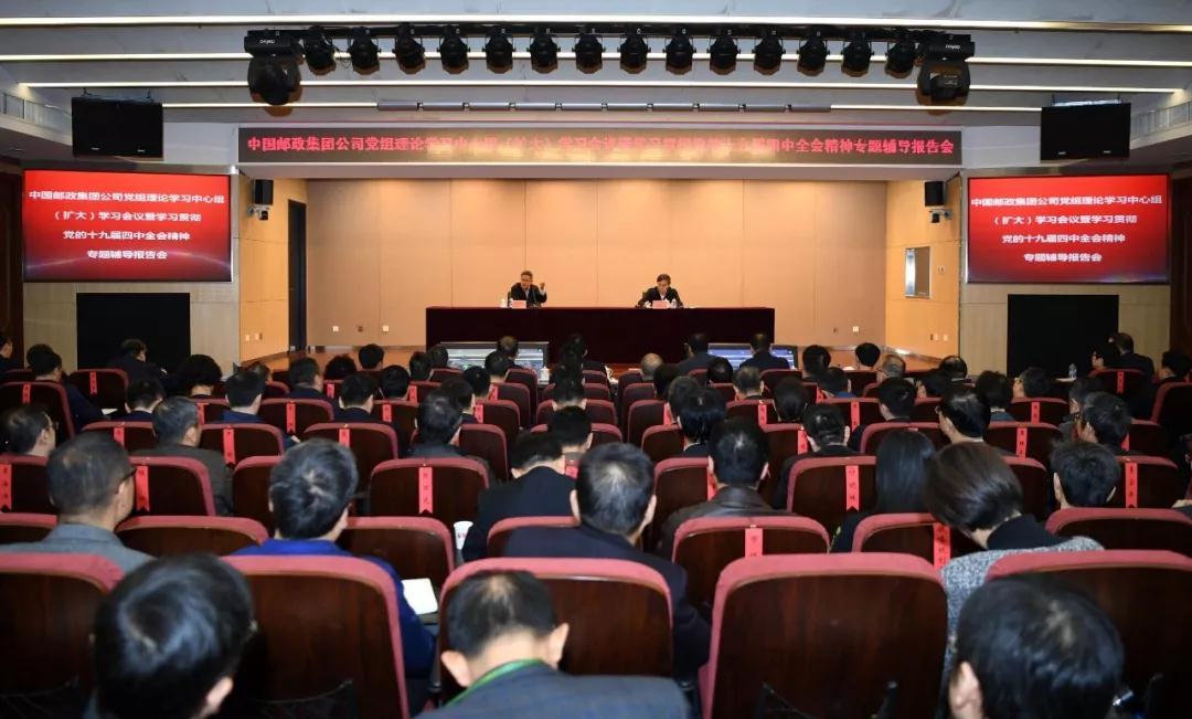11月21日,中國郵政集團(tuán)公司舉辦黨組理論學(xué)習(xí)中心組(擴(kuò)大)學(xué)習(xí)會議暨學(xué)習(xí)貫徹黨的十九屆四中全會精神專題輔導(dǎo)報告會,邀請中共中央黨校教授、中央電視臺特約時政評論員辛鳴解讀黨的十九屆四中全會精神。中國郵政集團(tuán)公司黨組書記劉愛力主持會議。集團(tuán)公司黨組成員、總部機(jī)關(guān)三級副及以上人員和控股子公司、寄遞事業(yè)部、在京直屬各單位領(lǐng)導(dǎo)班子成員在主會場參加會議;集團(tuán)公司各控股子公司、直屬各單位和各省(區(qū)、市)、地市、縣郵政三大板塊四級副及以上黨員干部在各分會場參加會議。
