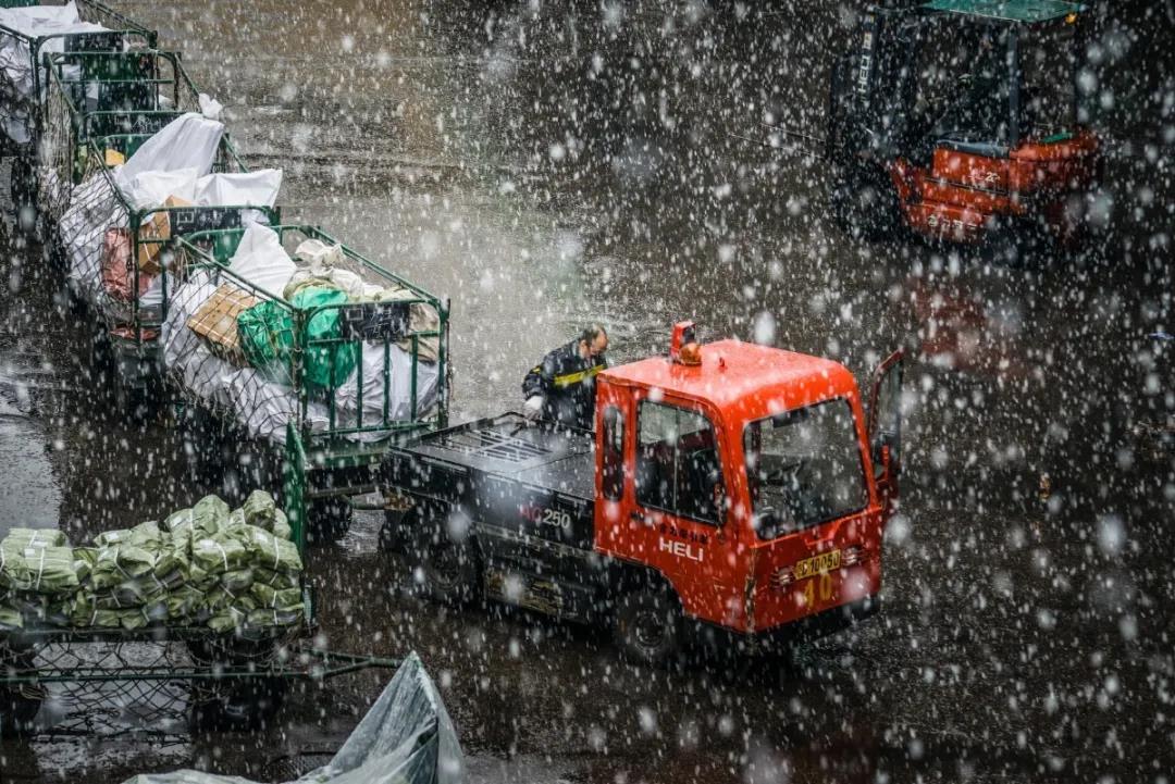 2020年2月14日上午,在位于北京站的北京郵區(qū)中心局,負(fù)責(zé)接發(fā)郵件的轉(zhuǎn)運(yùn)分揀員們正在風(fēng)雪中緊張地轉(zhuǎn)運(yùn)處理封發(fā)郵件,以確保郵政通信暢通。雖在疫情當(dāng)下又遇連續(xù)兩日的降雪天氣,但為了讓捐贈(zèng)物資快速寄達(dá)武漢,北京郵區(qū)中心局在分揀環(huán)節(jié)對(duì)防疫物資實(shí)施“三?!薄拔鍍?yōu)”工作機(jī)制,即專人接收、專人處理、專人發(fā)運(yùn),優(yōu)先收寄、優(yōu)先接收、優(yōu)先處理、優(yōu)先運(yùn)輸、優(yōu)先投遞,并開(kāi)通兩個(gè)郵件接收垛口作為綠色通道,捐贈(zèng)物資實(shí)行全程單獨(dú)處理,內(nèi)部處理環(huán)節(jié)提速兩個(gè)多小時(shí)。