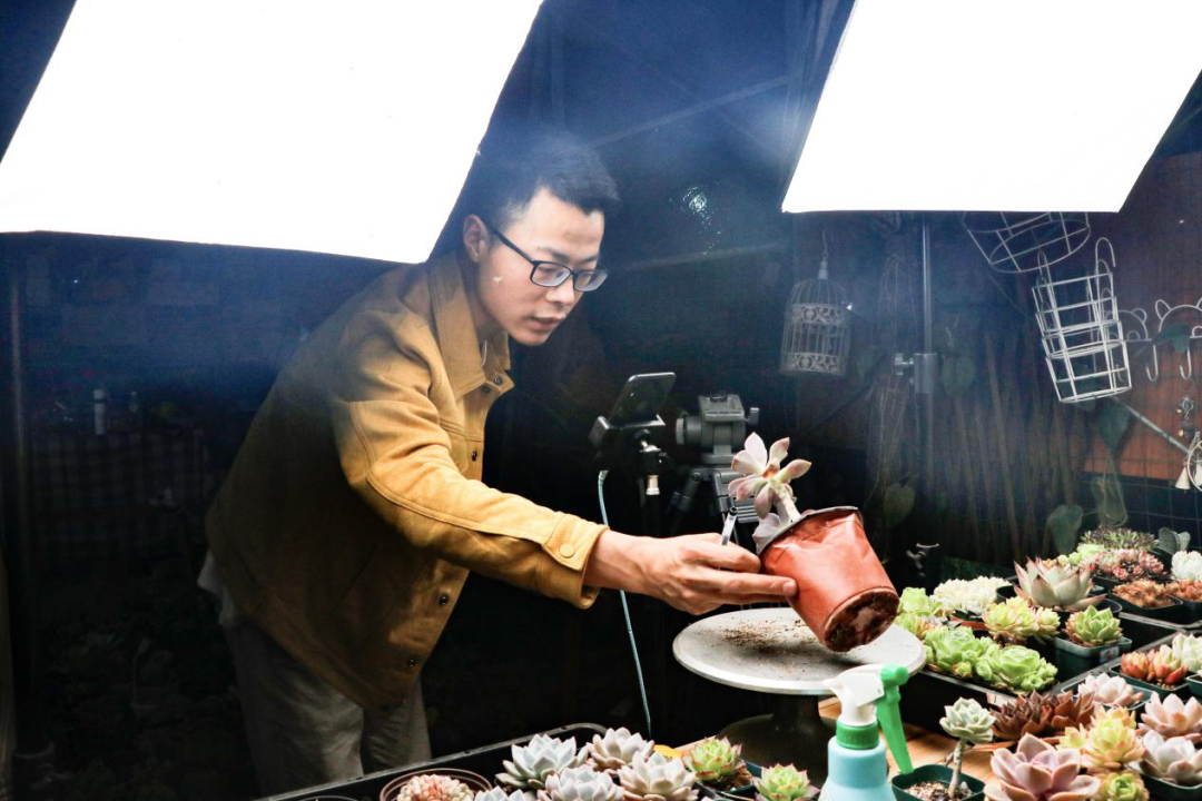 直播的時候,徐曉華全家齊上陣,自己做主播,妻子做直播小助手,姐姐負(fù)責(zé)上鏈接做后臺運營,爸媽管后端訂單發(fā)貨。如今,“火”起來的“多肉小王子”徐曉華,經(jīng)營著近1000種多肉植物,年銷售額近500萬元。