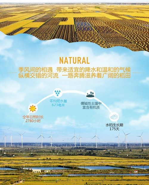 為實(shí)現(xiàn)全程生態(tài)管控,收獲的蟹田稻谷存于裝有谷物冷卻系統(tǒng)的現(xiàn)代化糧倉,配合電子檢溫設(shè)備實(shí)現(xiàn)低溫儲藏,保持稻谷的新鮮度。采用居世界領(lǐng)先水平的佐竹制米生產(chǎn)線精制加工,蟹田大米形似珠璣,色如脂玉,口感細(xì)膩,味道醇香。