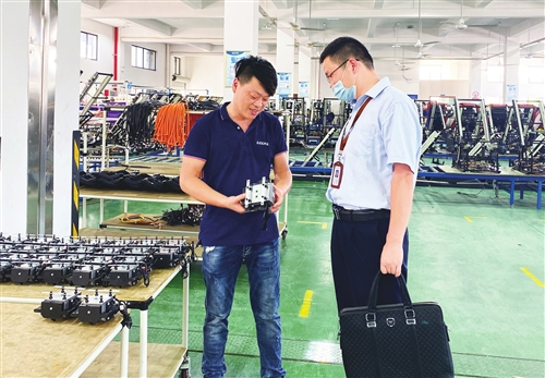 圖為該分行信貸人員走進當?shù)乜萍夹推髽I(yè)生產(chǎn)車間,了解企業(yè)的融資需求。