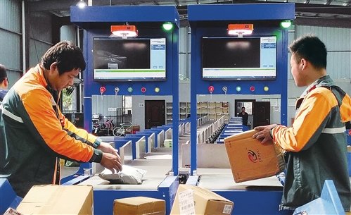 在“雙11”前,浙江省杭州市郵政分公司在4個(gè)經(jīng)營(yíng)部安裝了自動(dòng)分揀機(jī)。當(dāng)郵件到來后,員工在車廂尾部卸包裹,直接把包裹放在供包機(jī)上。包裹隨著皮帶機(jī)爬上分揀臺(tái),負(fù)責(zé)分揀的員工將包裹面單朝上,分揀臺(tái)上的攝像頭一掃,包裹便根據(jù)掃描的信息落入相應(yīng)的段道格口。經(jīng)營(yíng)部安裝了自動(dòng)分揀機(jī)后,以前是25名員工1個(gè)小時(shí)分揀3000件郵件,現(xiàn)在6個(gè)人就能用1個(gè)小時(shí)分揀完3000件郵件,同時(shí),作業(yè)現(xiàn)場(chǎng)一改往年包裹擺攤、員工無地下腳的場(chǎng)景。目前,有的經(jīng)營(yíng)部每日進(jìn)口郵件量較平時(shí)增長(zhǎng)75%,但有了自動(dòng)分揀機(jī),攬投員早晨出班時(shí)間可提前40分鐘。