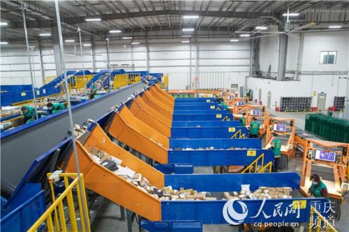 據(jù)了解,所有到達(dá)重慶郵政回興郵件處理場地的郵件裝卸后,通過雙層包裹分揀機(jī)自動(dòng)掃描包裹面單信息,再通過傳送帶將包裹傳送到需要投遞的站點(diǎn)垛口,分揀人員裝車后,發(fā)往各自投遞營業(yè)部進(jìn)行投遞。