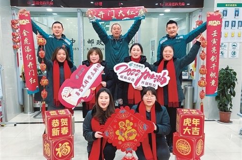 喜氣洋洋辭舊歲,虎虎生威迎新年。新年伊始,中國郵政廣大員工意氣風(fēng)發(fā)、豪情滿懷,全力開展業(yè)務(wù)旺季開門紅活動,大步邁進(jìn)推動企業(yè)高質(zhì)量發(fā)展的新征程。在推進(jìn)代理金融業(yè)務(wù)發(fā)展中,重慶市萬州片區(qū)郵政分公司定下了一個“小目標(biāo)”:春節(jié)前,全區(qū)郵政儲蓄余額規(guī)模要突破200億元。作為萬州郵政代理金融的標(biāo)桿網(wǎng)點(diǎn),電報路郵政所員工一展“壬寅亮劍千帆競,金虎添億開門紅”的對聯(lián),積極營造營銷氛圍,決心在網(wǎng)點(diǎn)儲蓄余額破億元的基礎(chǔ)上,再創(chuàng)新業(yè)績。