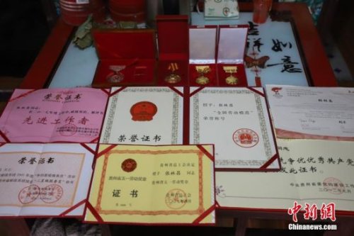4月12日,張林昌展示所獲榮譽(yù)證書。勤懇的張林昌因工作出色獲獎無數(shù),其中2010年獲得的“全國勞動模范”稱號是他最為驕傲的。張林昌是貴州省錦屏縣郵政局啟蒙支局鄉(xiāng)村郵遞員,他一人在莽莽群山之間送信已堅(jiān)持了31年。31年里,靠著肩挑背扛,他累計(jì)將140多萬件報(bào)刊信件送達(dá)深山的村民家中,步行里程已超過24萬多公里。1987年,23歲的張林昌剛從部隊(duì)退伍返鄉(xiāng)就接過老郵員肩上的郵包干上了鄉(xiāng)村郵遞員工作,負(fù)責(zé)錦屏縣河口鄉(xiāng)片區(qū)的郵路。位于大山深處的郵路全長90余公里,串聯(lián)著啟蒙鎮(zhèn)到河口鄉(xiāng)一帶2.5萬余民眾。這期間,他每年365天除了春節(jié)和偶爾有事請假,幾乎從不缺席。按照規(guī)定,年近55歲的他可申請退休,但他卻堅(jiān)定地說“只要我還能走,就會堅(jiān)持給鄉(xiāng)親們送郵件!” 中新社發(fā) 瞿宏倫 攝