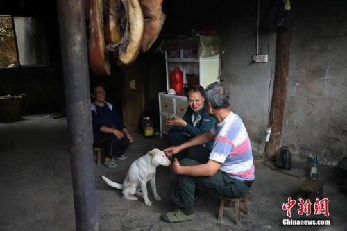4月12日,張林昌送郵件到深山中遇到村民下山趕集返回。 中新社發(fā) 瞿宏倫 攝