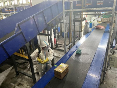 郵件到達營投部后,郵政人員對車輛和郵件還要進行全面消殺?!肮ぷ魅藛T上崗前發(fā)送健康碼和行程碼,到崗后第一件事先測量體溫做好登記,佩戴手套、口罩等,然后對車輛全部消殺一遍,對郵件外包裝至少每2小時進行一次消殺……”中國郵政集團有限公司南京市鼓樓區(qū)寄遞事業(yè)部副總經(jīng)理馬曉東說道,營投部每日進行多頻次消殺和通風,從操作間地面、快遞傳送帶到每一個快遞包裹,都會噴灑消毒,確保全覆蓋、無死角,保證生產(chǎn)生活環(huán)境清潔安全。