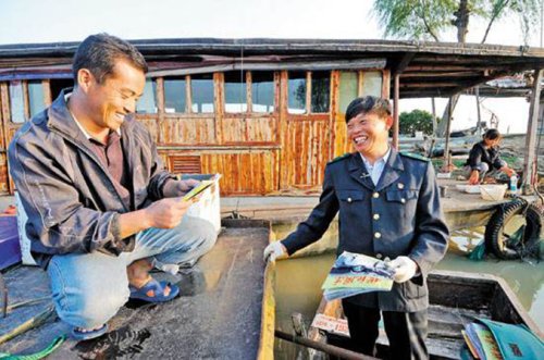 每次去投遞,唐真亞總會記錄下漁民們需要的生活用品,并買來給他們送到家門口。除了信件、報(bào)刊等,他船上往往還捎著給漁民們帶的東西:日用品、浮球、煤氣、米面……十分豐富。時(shí)間久了,漁民們就把存取錢、交話費(fèi)的事也交給了他。唐真亞既當(dāng)郵遞員,又當(dāng)采購員、送貨員。為了抓緊時(shí)間投遞,給漁民朋友送東西,每次出門,他會給自己帶上些烙餅等食物。他的午飯和晚飯,經(jīng)??窟@些在船上解決?!皫椭鷦e人讓我感覺心中很滿”。唐真亞說。