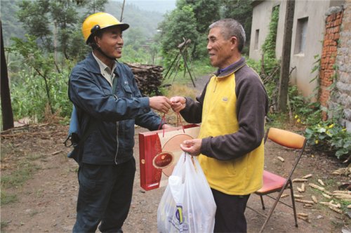 鄭愛軍給大山深處的老人送郵件。安徽省交通運(yùn)輸廳供圖