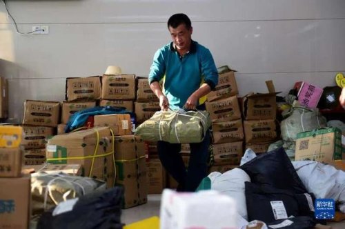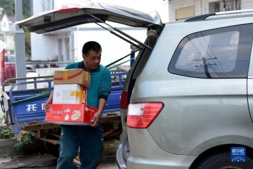 10月28日,在太湖縣北中鎮(zhèn)蓮花村,吳義陽(yáng)將村民寄出的包裹搬運(yùn)上車。