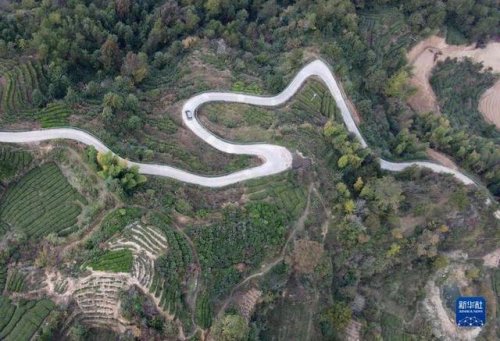 10月28日,吳義陽(yáng)駕車為村民投遞郵件(無(wú)人機(jī)照片)。