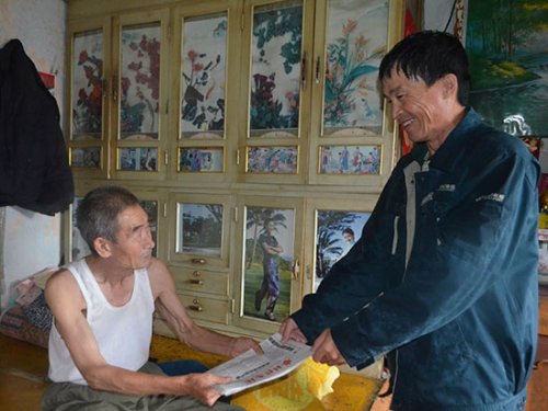 現(xiàn)在,兩江鎮(zhèn)的年輕人多外出打工,好多村屯留守的都是60歲以上的老人,耕地撂荒情況比較嚴(yán)重。2012年,為了響應(yīng)國(guó)家號(hào)召,永紅村村主任鄭吉春成立了合作社,全村33多公頃的耕地都由他承包耕種,單肥料款這一項(xiàng)就需要先期投入10多萬(wàn)元。鄭吉春在資金周轉(zhuǎn)上有很大困難,合作社又剛剛成立,借款成了難題,他在王會(huì)明投遞時(shí),說(shuō)起了自己的焦心事。王會(huì)明熟悉兩江鎮(zhèn)的每一塊土地,他知道只要方法得當(dāng),種子、肥料選的對(duì),永紅村這片地收成肯定錯(cuò)不了,他幫鄭吉春找到鎮(zhèn)里賣(mài)農(nóng)機(jī)的劉福軍,希望從他那里借10萬(wàn)元錢(qián),劉福軍說(shuō):“這錢(qián)別人借沒(méi)有,王會(huì)明借什么時(shí)候都有,因?yàn)橥鯐?huì)明這三個(gè)字就是保證,是信譽(yù)!我信他!”借來(lái)了錢(qián),王會(huì)明又幫著鄭吉春買(mǎi)種子、化肥,經(jīng)常到地里觀察莊稼的長(zhǎng)勢(shì),和鄭吉春研究改良耕種方法。功夫不負(fù)有心人,在王會(huì)明的幫助下,鄭吉春的地獲得了大豐收,畝產(chǎn)1100公斤,純收入25萬(wàn)元。秋收時(shí),看著鄭吉春樸實(shí)滄桑的臉上滿是幸福的笑容,王會(huì)明真切地感受到,他和鄉(xiāng)親們息息相關(guān),心心相印,是一家人。