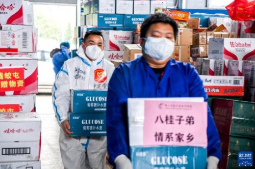 2月15日,在廣西百色市德保縣一處倉庫,工作人員在搬運抗疫物資。新華社記者 曹祎銘 攝