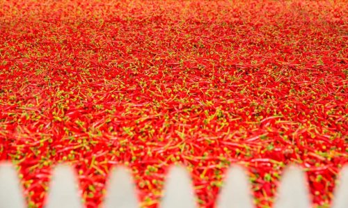 循著這股辣味,重慶采訪組來到重慶譚妹子金彰土家香菜加工有限公司。一進(jìn)門就聞到了空氣中彌漫著的辣椒香味,廠房里的烘干機(jī)正開足馬力運(yùn)轉(zhuǎn),庫房里加工好的干辣椒正等待著郵車的到來。