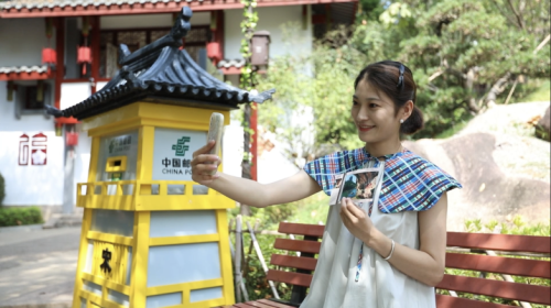 “現(xiàn)在的郵局可真是和以前不一樣了,不但能將我拍的照片現(xiàn)場(chǎng)打印成明信片,還可以掃碼傳祝福,體驗(yàn)感爆棚!”