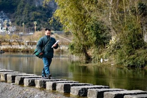 在貴州省龍山鎮(zhèn),莫富元準(zhǔn)備投遞郵報(bào)(2月14日攝)。