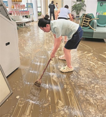 8月4日,涿州郵政范陽路營業(yè)所全體員工到崗,合力清理網(wǎng)點(diǎn)淤泥,當(dāng)天上午網(wǎng)點(diǎn)恢復(fù)營業(yè)?!鯊堄蠲?攝