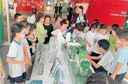 小朋友們對大運(yùn)村郵政服務(wù)點(diǎn)位里的各式大運(yùn)會郵品非常感興趣。