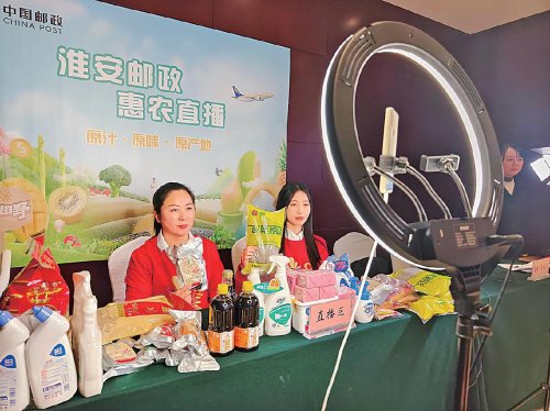 江蘇淮安郵政開展“年貨節(jié)”直播。 □陳俊 攝