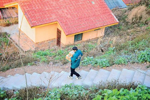 郵政小哥穿梭在蜿蜒的聯(lián)戶路上投遞包裹?! 鯀敲簟z