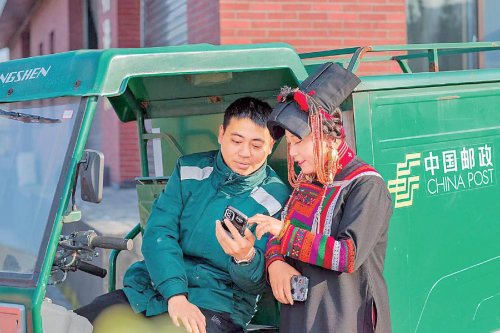 把方便路鋪進“彝家新寨”。在層層疊疊、錯落有致的“彝家新寨”里,彎彎曲曲的聯(lián)戶路上,總能看到郵政投遞員的身影。他們一大早就開始忙碌,喊著熟悉的名字:“莫舒、阿依,快出來領(lǐng)包裹啦!”為了第一時間將郵件送到彝族同胞手中,峨邊縣分公司結(jié)合彝村實際,采用三輪車運到大路,再由投遞員背、抱、扛到戶的投遞模式,將一件件日用品和生產(chǎn)用具投送到村民手中。2023年,該分公司為兩個村的村民投遞郵件近8000件。