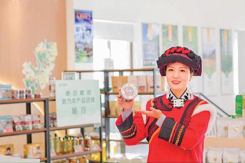 郵政員工直播帶貨,介紹“彝家新寨”的農(nóng)特產(chǎn)品?! 鯀敲簟z