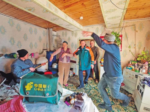 在養(yǎng)蜂戶的家中,主人熱情邀請鄉(xiāng)郵員共舞一曲?!鯀挝亩Y 攝