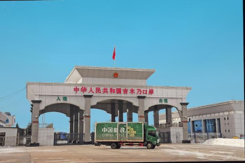 裝滿跨境電商貨物的郵車從吉木乃口岸駛過?!鹾喦缜纭z