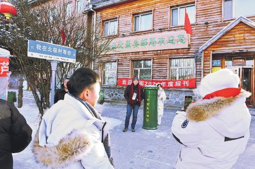 在北極村郵局,游客們踴躍打卡留下美好的旅行紀念?!醣緢笥浾摺埖さぁz