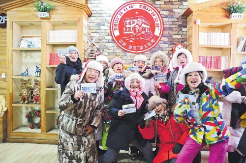 湖南“小辣椒”打卡中國雪鄉(xiāng)童話郵局,郵局的阿姨熱情送上免費熱飲和精美的伴手禮,孩子們開心極了。□武藝 攝