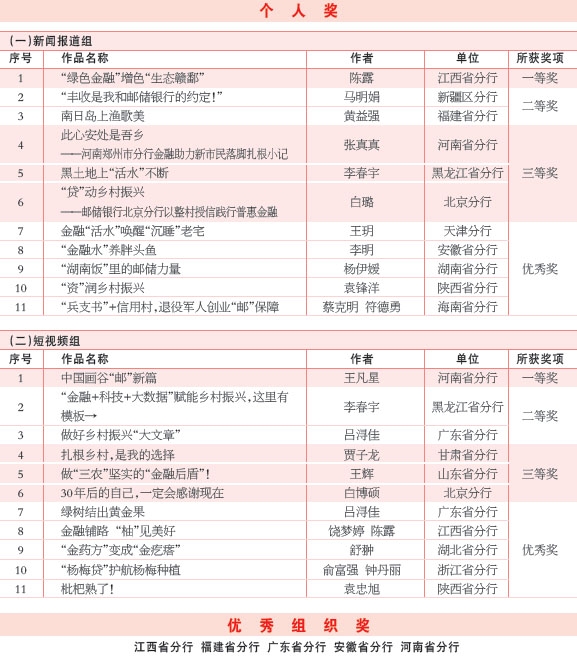 2023年度郵儲(chǔ)銀行好新聞大賽評(píng)選結(jié)果