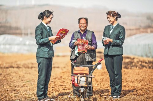 山東省淄博市沂源縣郵政分公司員工深入田間地頭,來到大張莊鎮(zhèn)董家河溝村,為村民介紹郵政助力春耕的服務(wù)內(nèi)容?! 踔袊?guó)郵政報(bào)通訊員 王禾 周鵬 記者 袁威 攝影報(bào)道