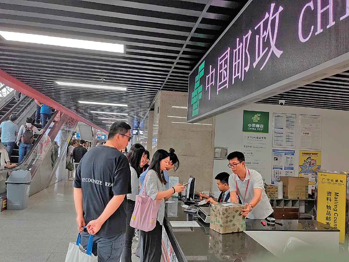 廣交會郵局為采購商提供商品和樣品寄遞服務(wù)。 □吳陽山 攝