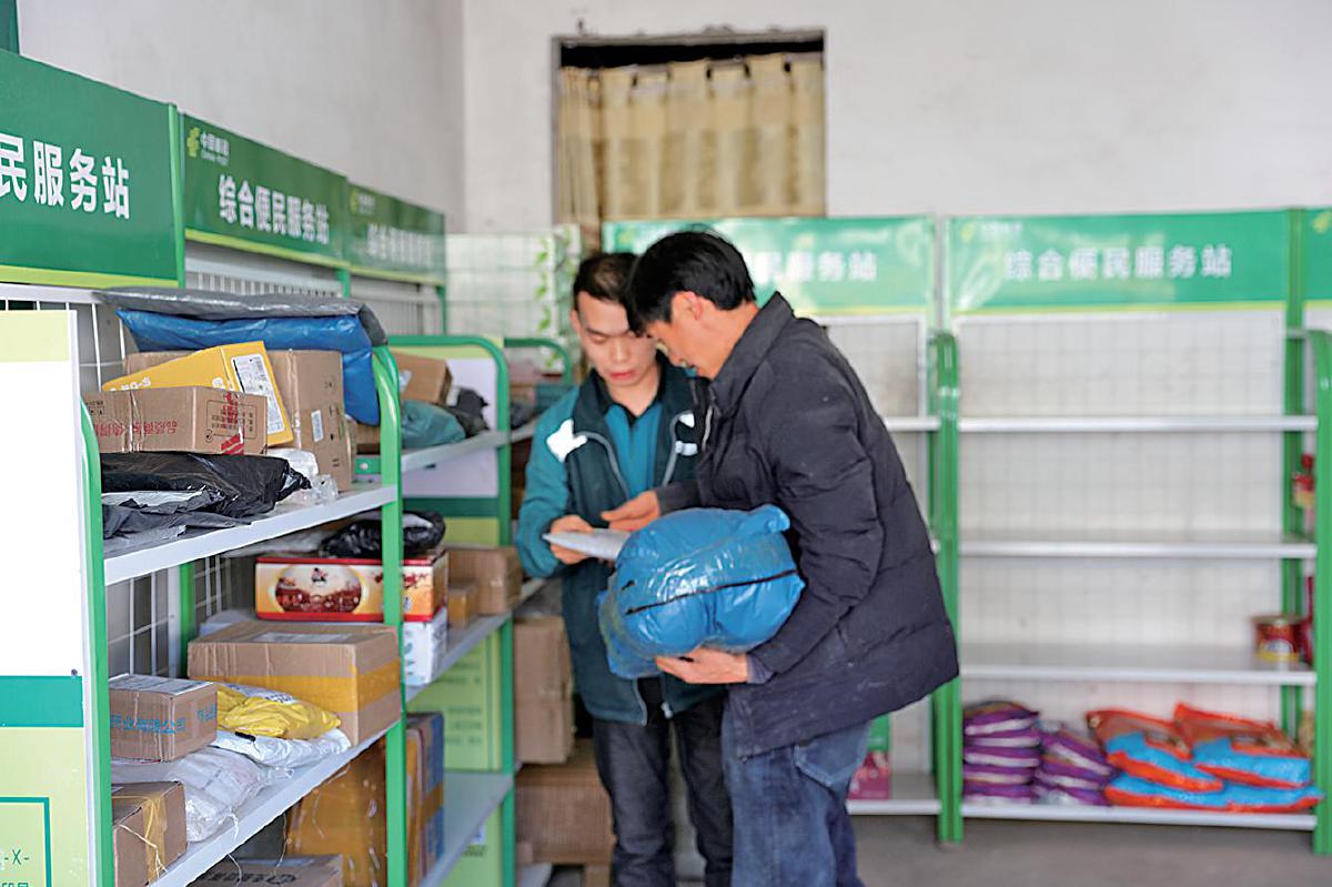 客戶在西安村郵政綜合便民服務(wù)站取件?! 趵詈牿巍z