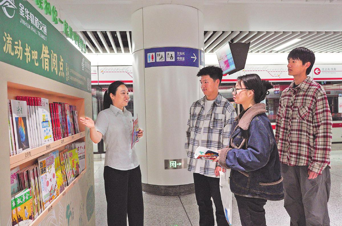 日前,浙江金華郵政與市軌道交通集團(tuán)啟用“流動(dòng)書吧”,為建設(shè)“書香金華”又添一惠民實(shí)舉。金華郵政為“流動(dòng)書吧”免費(fèi)提供近2000本雜志,乘客可在進(jìn)站乘車時(shí)順手借一本,出站時(shí)歸還至固定還書點(diǎn)即可,契合當(dāng)今人們碎片化的閱讀習(xí)慣,受到乘客的歡迎。