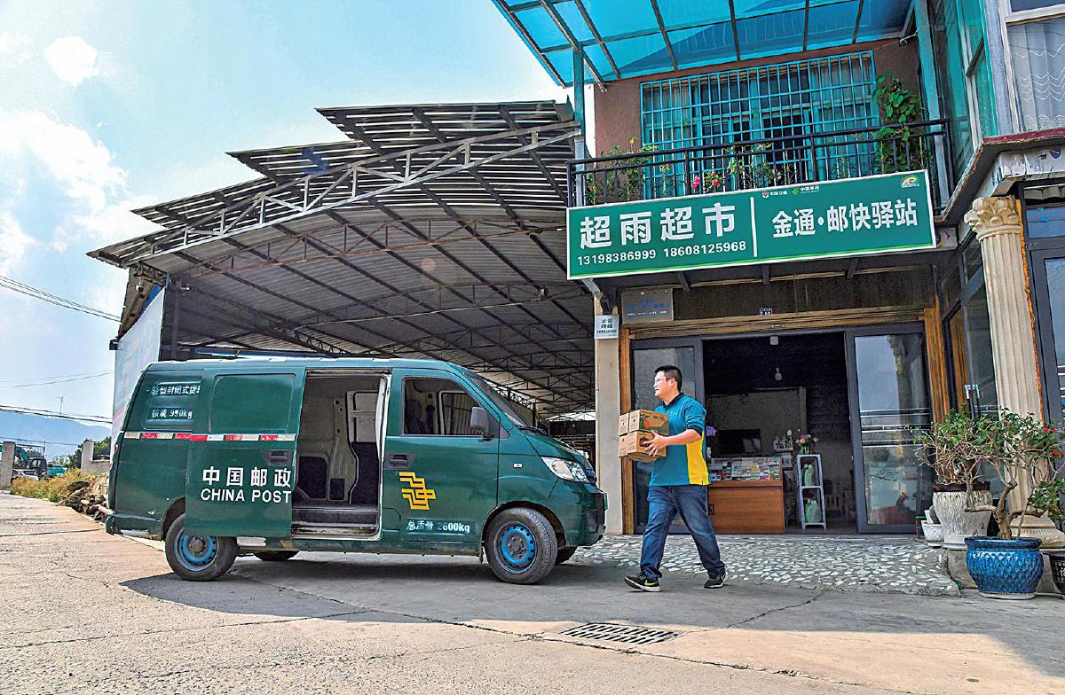肖平非常高興,在郵政的幫助下,她的超市實(shí)現(xiàn)了提檔升級,成為村級綜合便民服務(wù)站。店招、打印機(jī)、貨架都是郵政提供的,超市里也增添了不少郵政惠民商品。更重要的是,超市作為村里的郵件收寄點(diǎn),取郵件和寄物品的村民越來越多。來自全國各地的郵件在這里集散,也匯聚起源源不斷的客流。