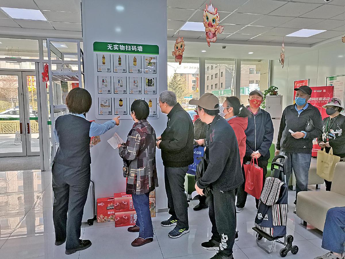 長春郵政在營業(yè)廳設(shè)置無實(shí)物掃碼墻,方便會(huì)員在線選購商品?!鯀菐r 攝