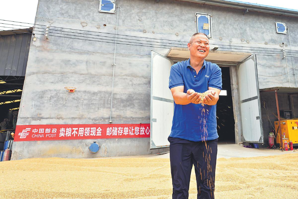 西平縣盆堯鎮(zhèn)于營村郵政合作收糧點(diǎn)負(fù)責(zé)人于成功臉上洋溢著豐收的喜悅。