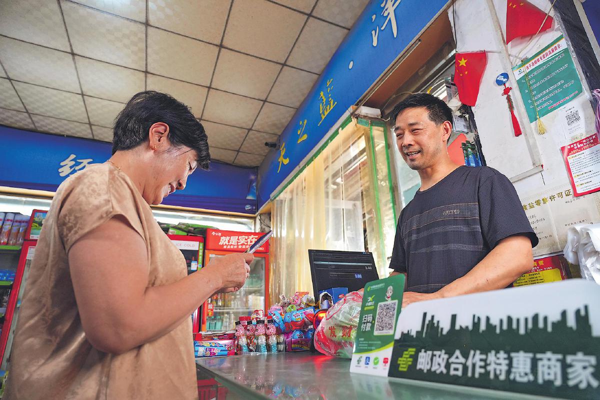 村民在西平縣盆堯鎮(zhèn)于營村綜合便民服務(wù)站使用“小郵付”掃碼付款。