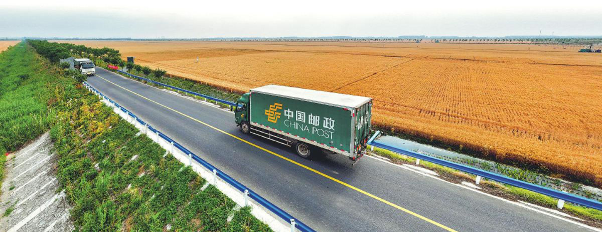 綠色郵車奔馳在西平縣老王坡高標(biāo)準(zhǔn)農(nóng)田示范區(qū)。
