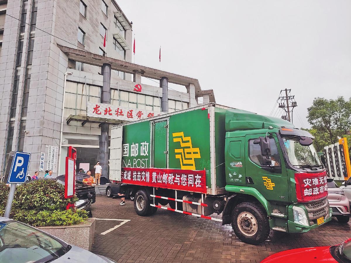 圖為黃山市分公司接令緊急運(yùn)送防汛救災(zāi)物資。 □鄭繼慧 攝