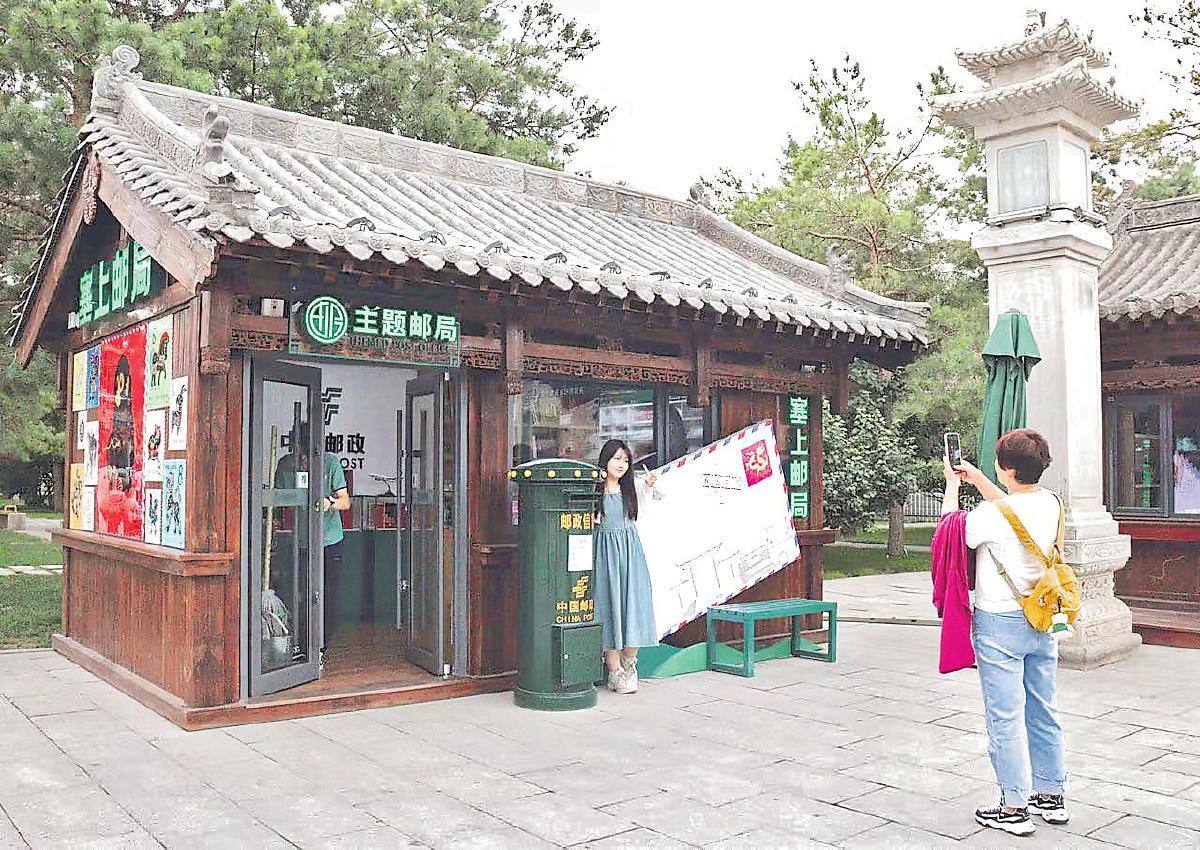 該主題郵局兼顧游客及市民的多元化用郵需求,內(nèi)設(shè)文創(chuàng)產(chǎn)品銷售區(qū)和自助寄遞服務(wù)區(qū)等五大功能分區(qū)。它通過郵票、明信片、印章、文創(chuàng)產(chǎn)品等形式,展示塞上老街的北疆文化和呼和浩特的風(fēng)土人情,讓游客感受到郵政的專屬魅力。來自北京的一位游客表示:“到這兒來集戳、寄明信片,很有意義。蓋了塞上老街、馬頭琴等具有民族特色和地方特色的印章,是一種別樣的打卡方式。”
