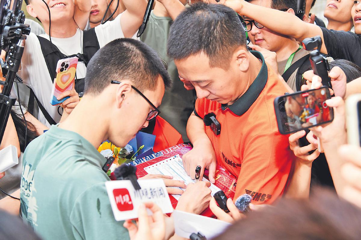 7月8日9時(shí)30分,四川省首份高考錄取通知書從四川大學(xué)錄取現(xiàn)場(chǎng)發(fā)出,投遞至考生指定地址(上圖)。當(dāng)天18時(shí)45分,北京市第一封普招高考錄取通知書在北京語(yǔ)言大學(xué)現(xiàn)場(chǎng)打印,北京郵政特別選派了全國(guó)五一勞動(dòng)獎(jiǎng)?wù)芦@得者史春華承擔(dān)投遞任務(wù)(下圖)。四川、北京首封高考錄取通知書的安全送達(dá),標(biāo)志著中國(guó)郵政2024年高考錄取通知書寄遞工作正式拉開(kāi)帷幕。