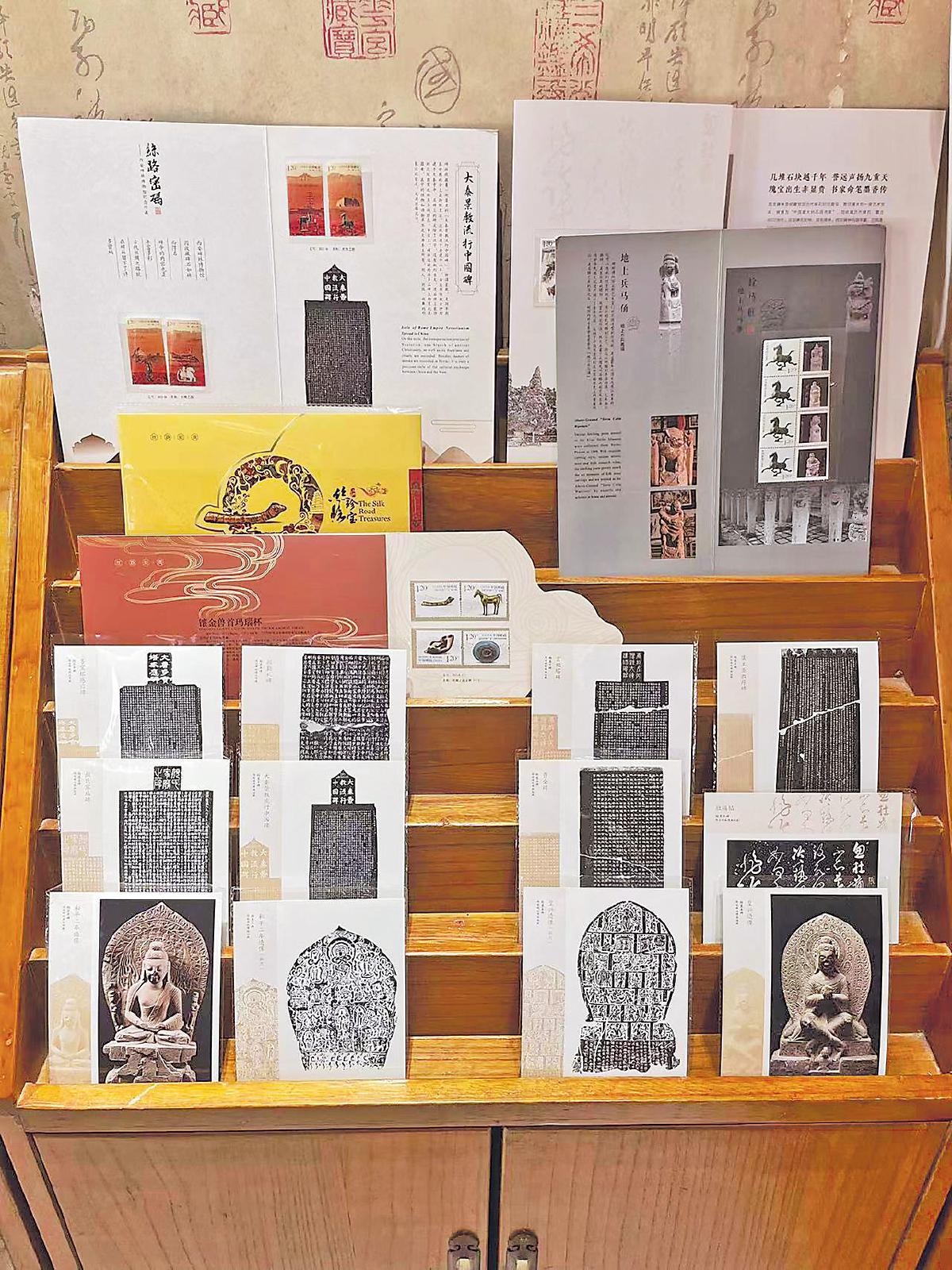 在碑林博物館主題郵局的郵品設(shè)計方面,陜西郵政更是別出心裁。這里不僅有昭陵六駿、碑林珍貴碑文的拓片明信片,也有結(jié)合碑林館藏文物開發(fā)的特色郵品,并詳細介紹了這些文化瑰寶的歷史和傳承。碑石有靈,翰墨雋永。相關(guān)郵品不僅受到游客的喜愛,更是為許多書法愛好者所珍藏。