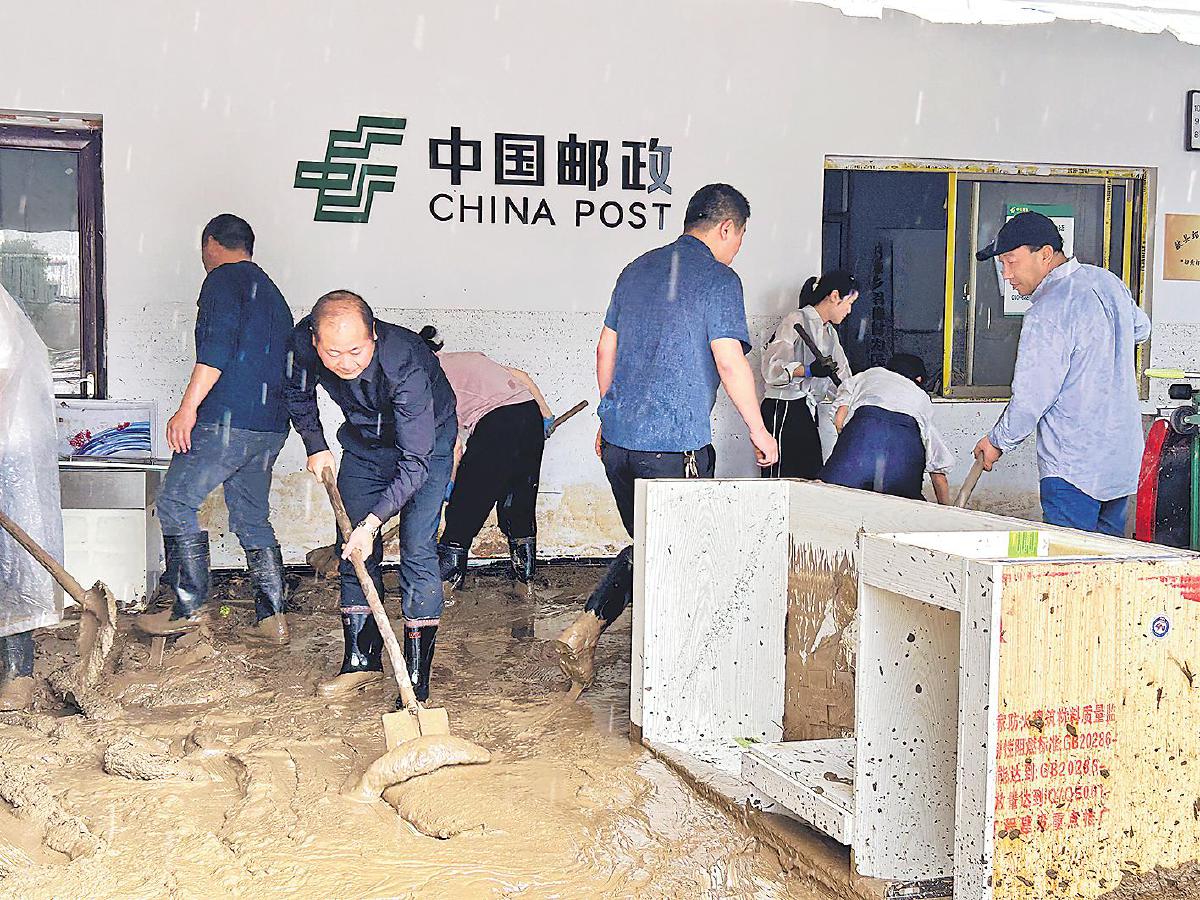 6月26日,安徽省黃山市歙縣郵政分公司第一時(shí)間組織12人的先鋒隊(duì)趕往紹濂郵政所除淤、清理雜物,開展災(zāi)后恢復(fù)生產(chǎn)經(jīng)營(yíng)工作?! 跬跗G琪 攝