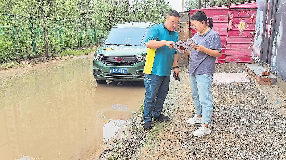 7月9日,河南省鄭州市中牟縣郵政分公司雁鳴湖支局投遞員在暴雨后,第一時(shí)間將郵件送到客戶手中。 □彭程 攝