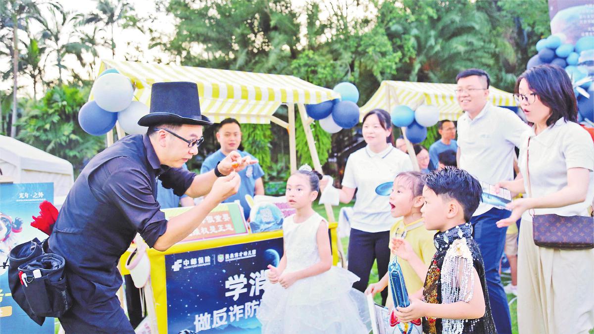 近期,隨著“7·8全國保險公眾宣傳日”活動的開展,中郵保險廣西壯族自治區(qū)分公司攜手南寧市郵政分公司舉辦了一場別開生面的親子航天主題消保宣教活動。活動現(xiàn)場,不僅有航天知識講座和星空觀測體驗,還設(shè)置了保險知識競答、魔術(shù)表演和時光慢遞明信片等環(huán)節(jié),激發(fā)了孩子們的學(xué)習(xí)興趣。圖為家長和孩子們認真觀看魔術(shù)表演,積極參與消保知識問答。