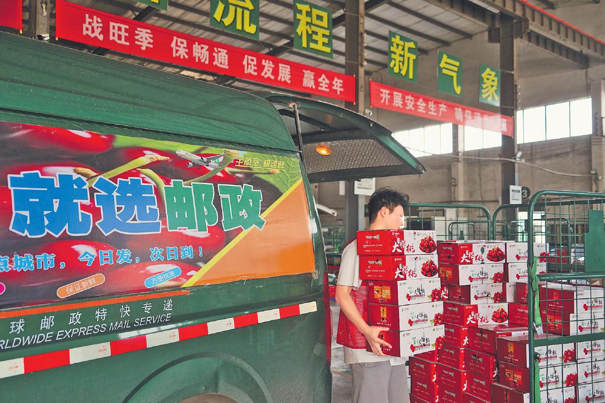 趙明明的櫻桃園、任素茂的合作社、電商客戶的產(chǎn)地倉、郭家莊村的交易市場……在這個(gè)“櫻桃季”,郵政人以服務(wù)鄉(xiāng)村振興為己任,為解決櫻桃產(chǎn)業(yè)的“銷售難”“寄遞難”“融資難”而奔波忙碌。從線上線下銷售推廣到“航空+冷鏈”多式聯(lián)運(yùn),從普惠金融服務(wù)支持到賦能產(chǎn)業(yè)提質(zhì)升級,郵政以“極速鮮”全產(chǎn)業(yè)鏈惠農(nóng)服務(wù)生態(tài),不斷推動鄉(xiāng)村特色產(chǎn)業(yè)發(fā)展,為服務(wù)鄉(xiāng)村振興注入了新活力、新動能。