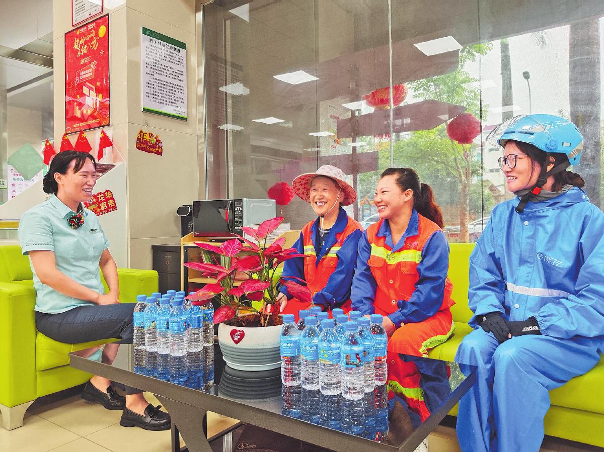 進(jìn)入暑期以來,云南省德宏傣族景頗族自治州迎來高溫和降雨天氣,許多戶外勞動者頂著烈日、迎著風(fēng)雨堅(jiān)守在工作崗位上。德宏州郵政分公司積極履行社會責(zé)任,充分發(fā)揮“郵愛驛站”的作用,邀請清潔工、外賣員、快遞員等戶外勞動者到驛站納涼、休息,為戶外勞動者送上關(guān)愛。同時,驛站工作人員還主動開展金融知識宣傳,為戶外勞動者普及金融知識和防詐知識,受到戶外勞動者的歡迎。