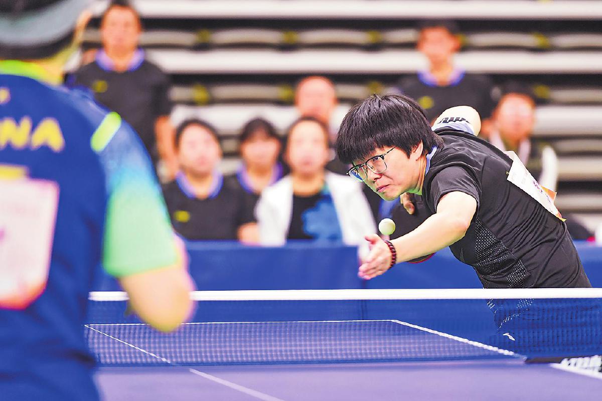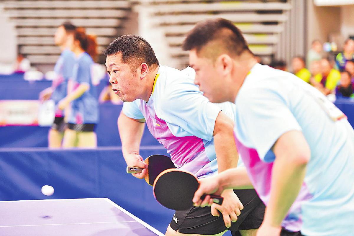 本次比賽觀賞性、競技性十足。賽場上,有面對臺風肆虐依然堅持訓(xùn)練迎戰(zhàn)比賽的隊伍,有連續(xù)奮戰(zhàn)四屆比賽即將退休的老將,有從國家隊、省隊退役帶傷上陣的斗士,有并肩作戰(zhàn)的夫妻檔,有接力傳承的老中青組合,匯聚起這場乒乓盛宴的強大陣容。來自江西郵政代表隊的劉羿和吳春顏是夫妻檔混雙組合,兩人在大學(xué)因乒乓球結(jié)緣,后來又成為工作上的同事,這次在賽場上更是展現(xiàn)出了伴侶間的默契?!拔覀兎浅A私獗舜?,很多時候心領(lǐng)神會,能夠取長補短。”劉羿如是說。曾代表中國郵政出征“2020中國職工乒乓球聯(lián)賽”并斬獲“四金二銀一銅”戰(zhàn)績的選手們幾乎全部來到了賽場,其中男單青年甲組冠軍蔡偉表示:“上次是對外比拼,這次是內(nèi)部競技,友誼第一?!?/p>